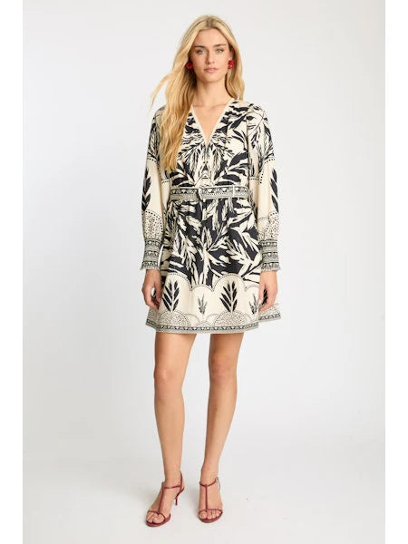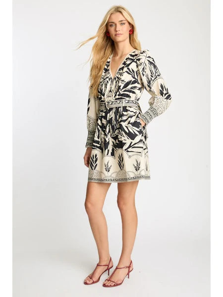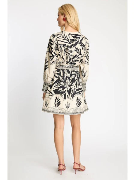 Designed with a removable matching belt to cinch the waist, the Carly Dress offers a customizable, figure-flattering fit. The hem is finished with a delicate leaf border detail, adding artisanal interest and movement. Crafted from cotton, it’s ideal for warm-weather occasions and transitions seamlessly from day to evening.
