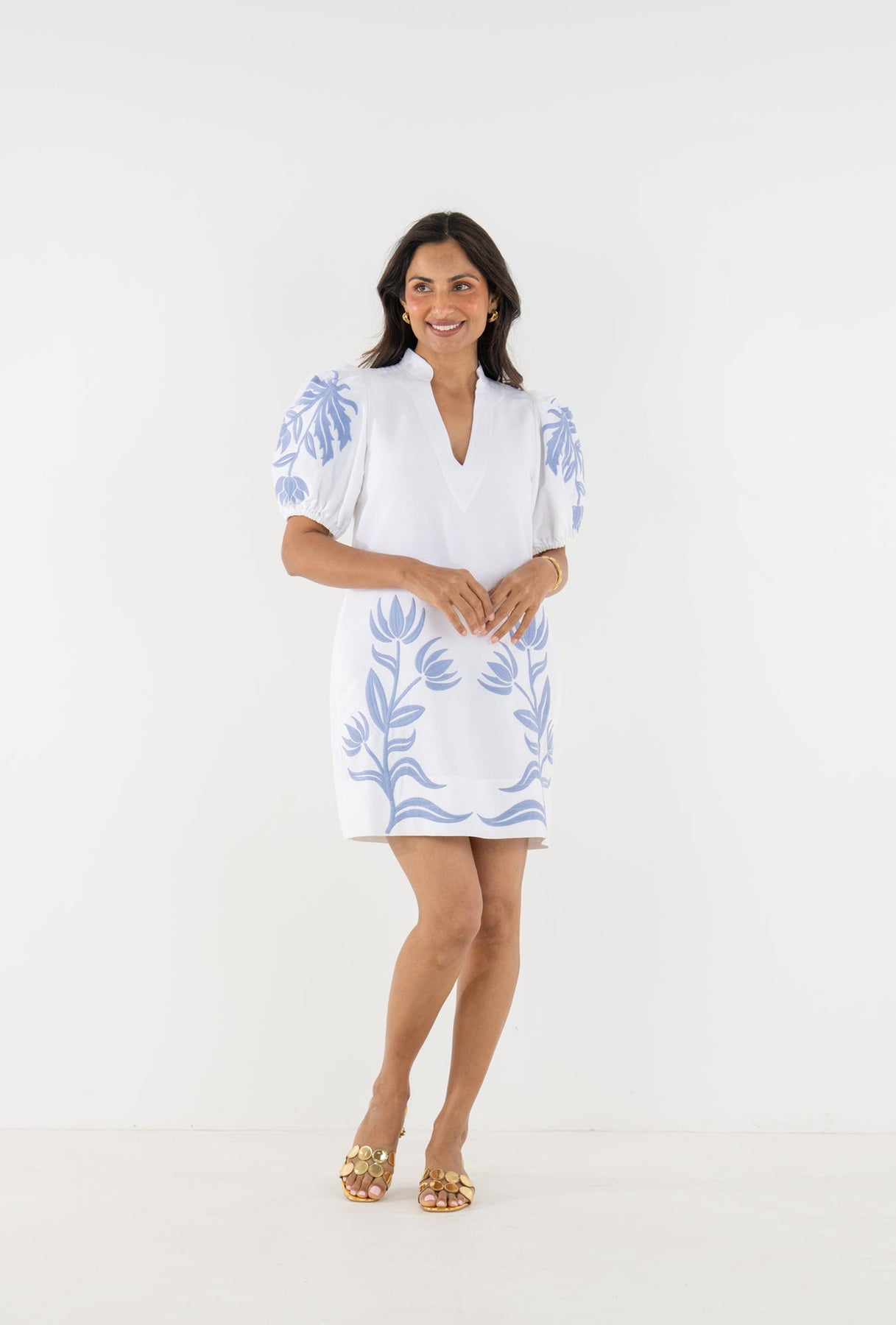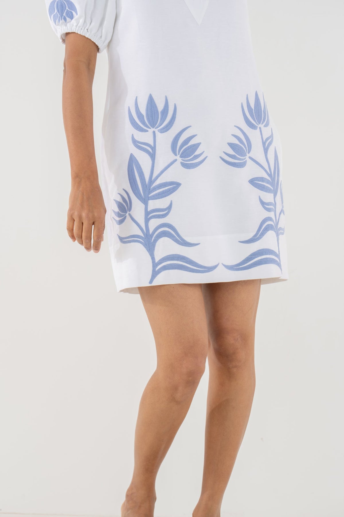 The Hampton Mini in Dutch Tile is a fresh take on an enduring silhouette. Designed with a mandarin-style collar, softly puffed sleeves with elastic cuffs, and a subtly tailored shape, it’s finished with functional side pockets for everyday ease. Delicate embroidered florals bloom along the front and sleeves, adding texture and a touch of whimsy to this elevated spring classic.