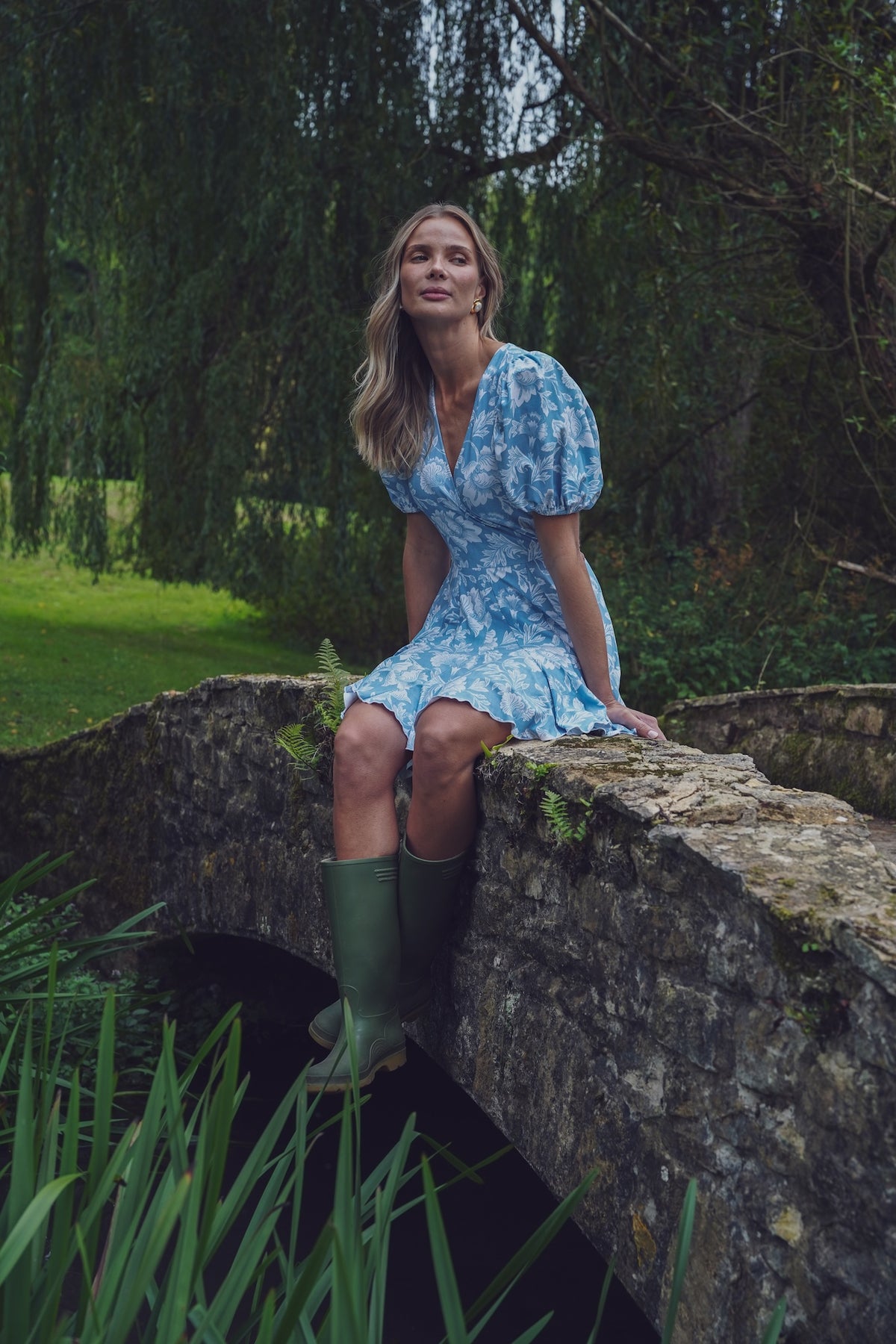 Beautiful wrap dress in blue and white pattern...