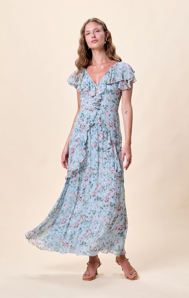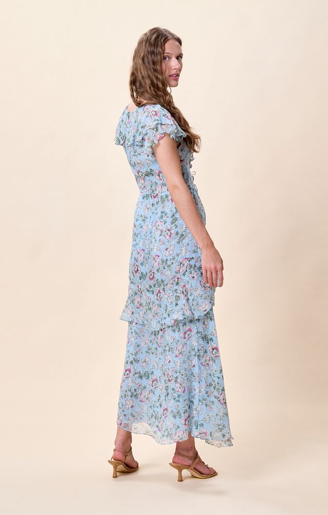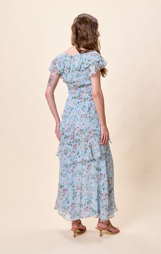 Crafted from 100% viscose, the Sabina Ankle Dress is an effortless spring staple made for sun filled days and evening wanderings. Designed in airy crinkle chiffon with soft short ruffle sleeves, its breathable, flowy fabric and romantic silhouette strike the perfect balance of ease and elegance. A timeless piece you’ll reach for season after season in your sustainable wardrobe.