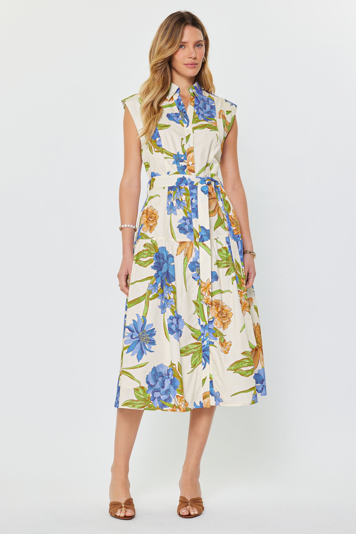 Floral Tiered Belted Midi Dress