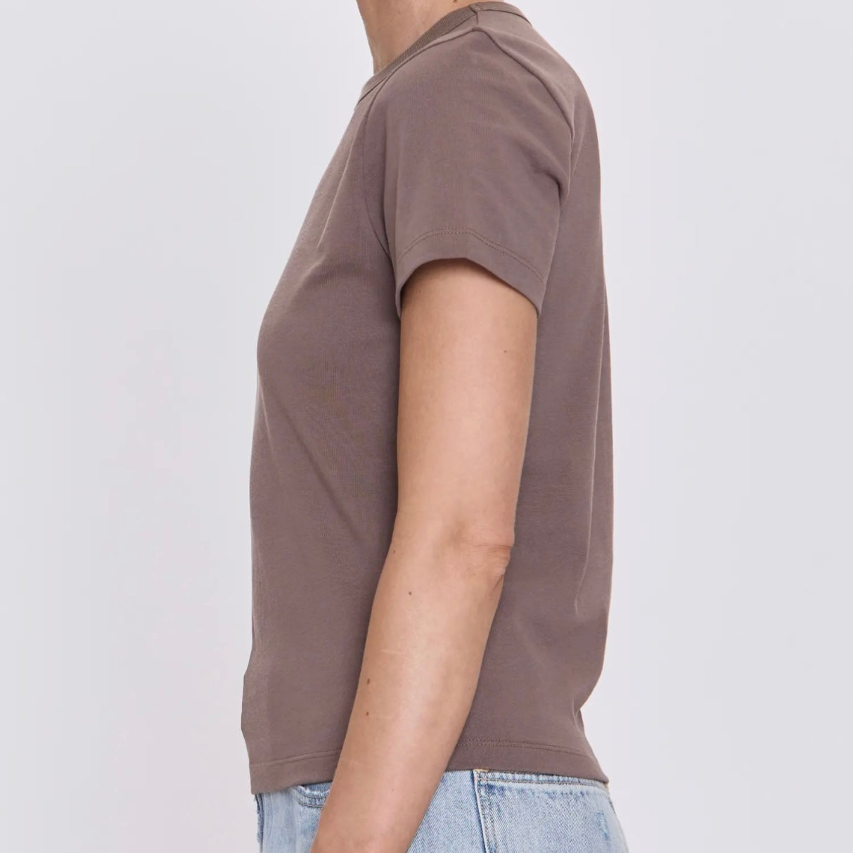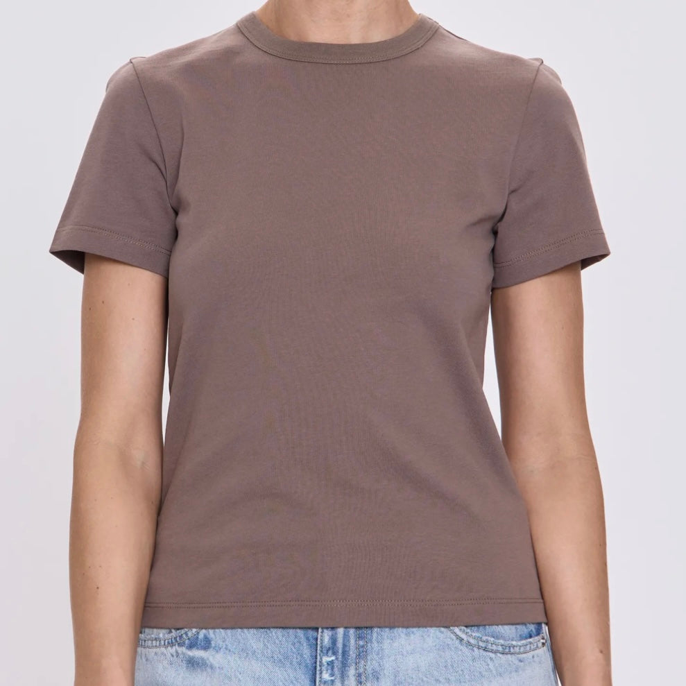 Simplify your style with the Alba Tee. This isn't just another basic – it's your new favorite essential, crafted from a rich and premium fabric that elevates your everyday look. The waist-hitting length ensures a flattering fit with all your favorite bottoms, from skirts to jeans. Layer it, tuck it, or wear it solo – the Alba Tee is designed for effortless versatility. Perfect for the woman who appreciates classic style with a modern edge, you'll find yourself reaching for this tee again and again.