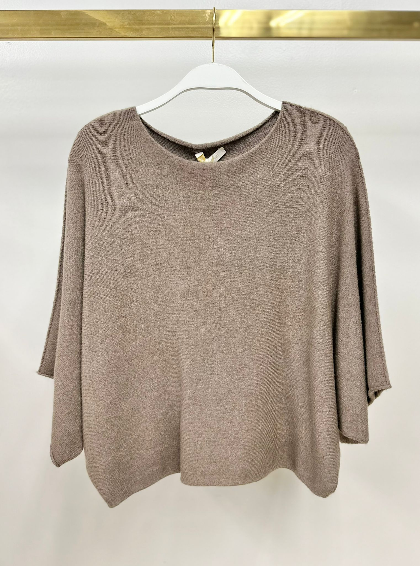 Crewneck Batwing Sleeve Knit Top-Dark Mocha