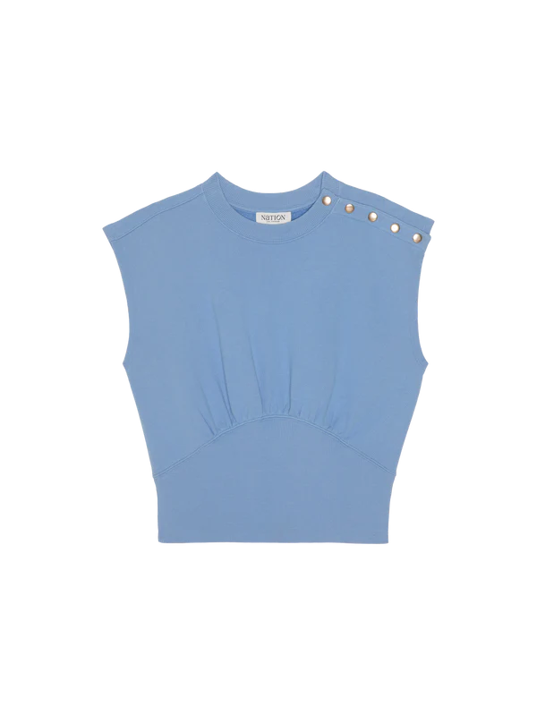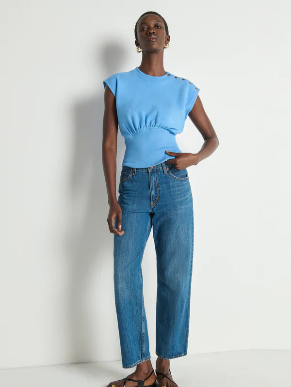 The Nadia Sweatshirt balances structure and softness, ribbed and finished with gold snaps for something extra. Made from 100% cotton in a boxy silhouette
