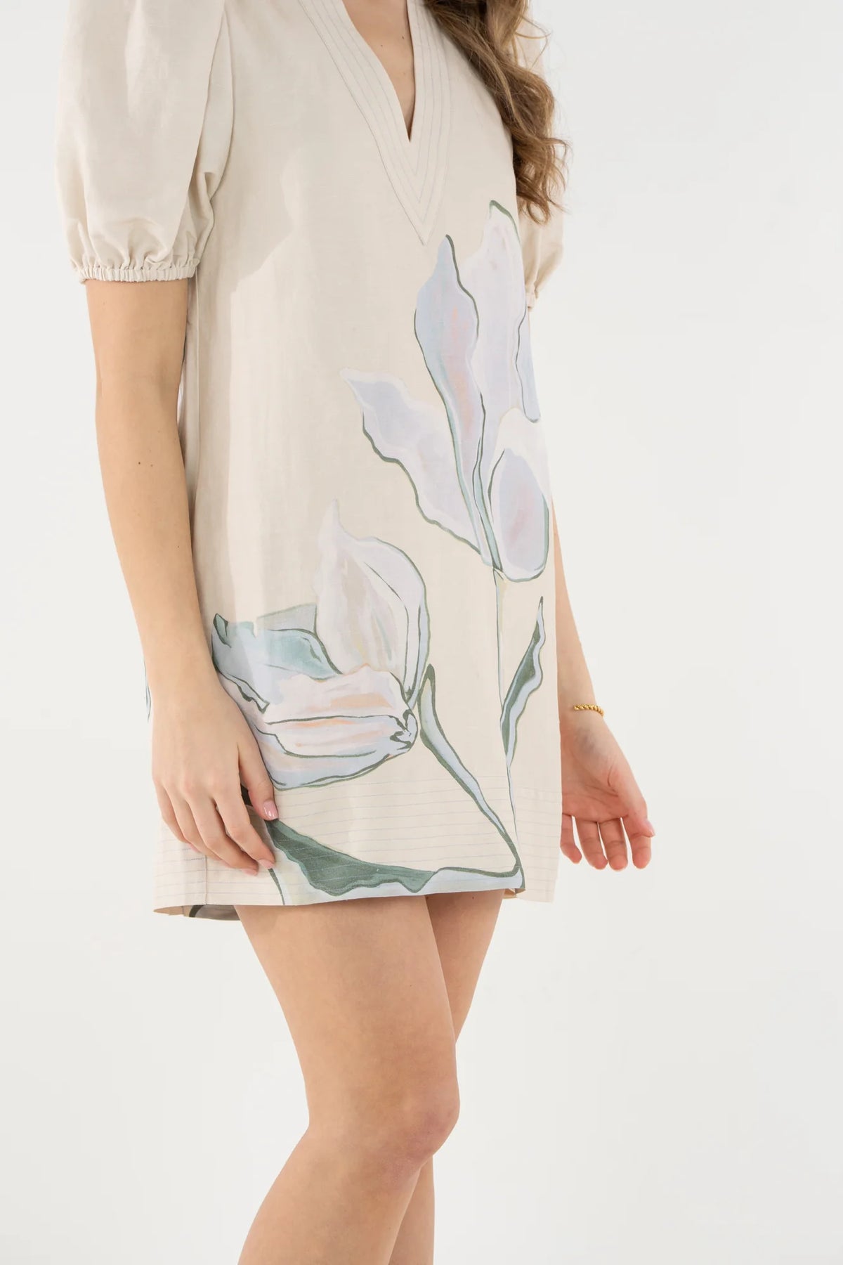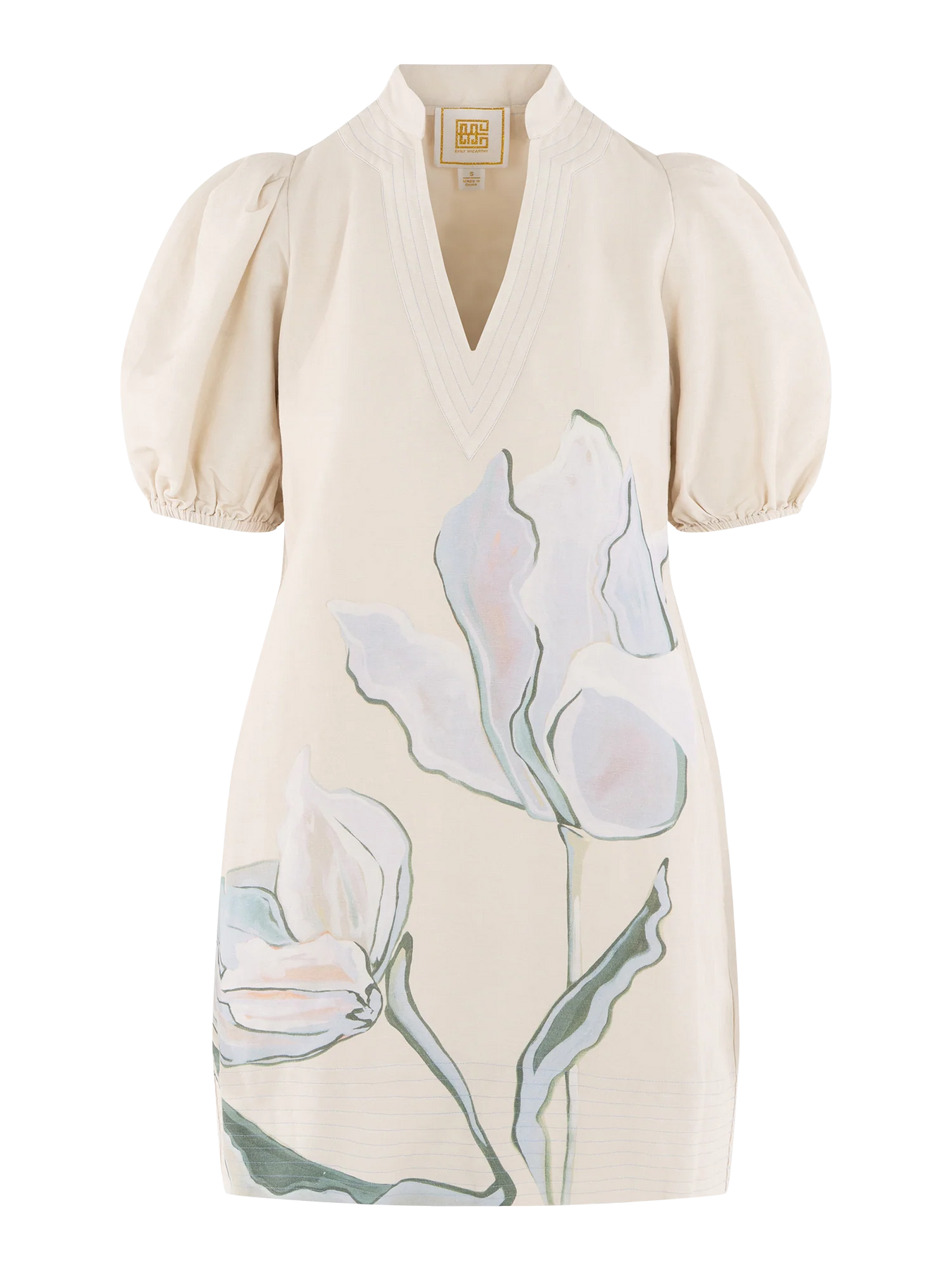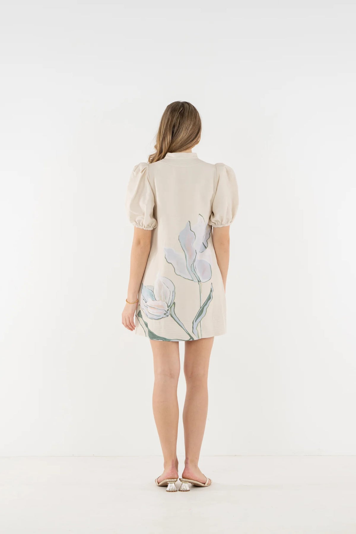 The Hampton Mini in Lavender Fields features a mandarin-style collar, elastic puff sleeves, and functional side pockets, finished with a softly tailored silhouette that offers shape without clinging. Designed in collaboration with artist Jessica O’Neill, the Lavender Fields print translates a hand-painted canvas of gentle florals into a wearable design, bringing a sense of softness and artistry to this signature mini silhouette.Carsyn is 5'10" and is wearing a size small.